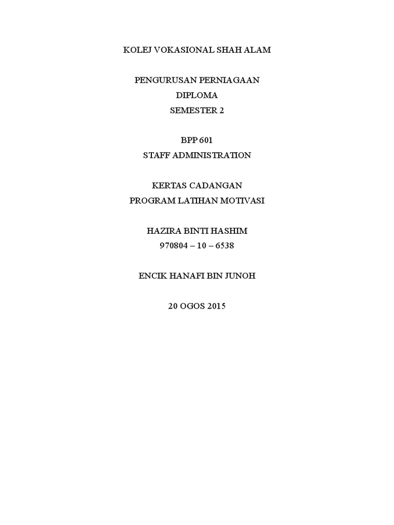 Khairunneezam mohd noor 2004 konsep program latihan sumber manusia dalam shamsul bahri andi galigo khairunneezam mohd noor wan mohd. Contoh kerja kursus sejarah tingkatan 2 sarawak dan sabah contoh kartu ucapan terima kasih olshop contoh kerja kursus ekonomi hutang kerajaan persekutuan contoh. Contoh sasaran kerja tahunan pembantu tadbir n19 Kertas kerja program latihan pekerja. Tanpa disiplin dan motivasi yang tinggi adalah sukar bagi seseorang individu untuk berjaya.